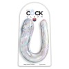El dildo doble transparente Large Double Trouble de King Cock Clear tiene forma de pene, con venas pronunciadas y glande en cada extremo.