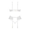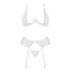 Presentamos el sensual conjunto de lencería blanca Rose set, que incluye sujetador, tanga y liguero.