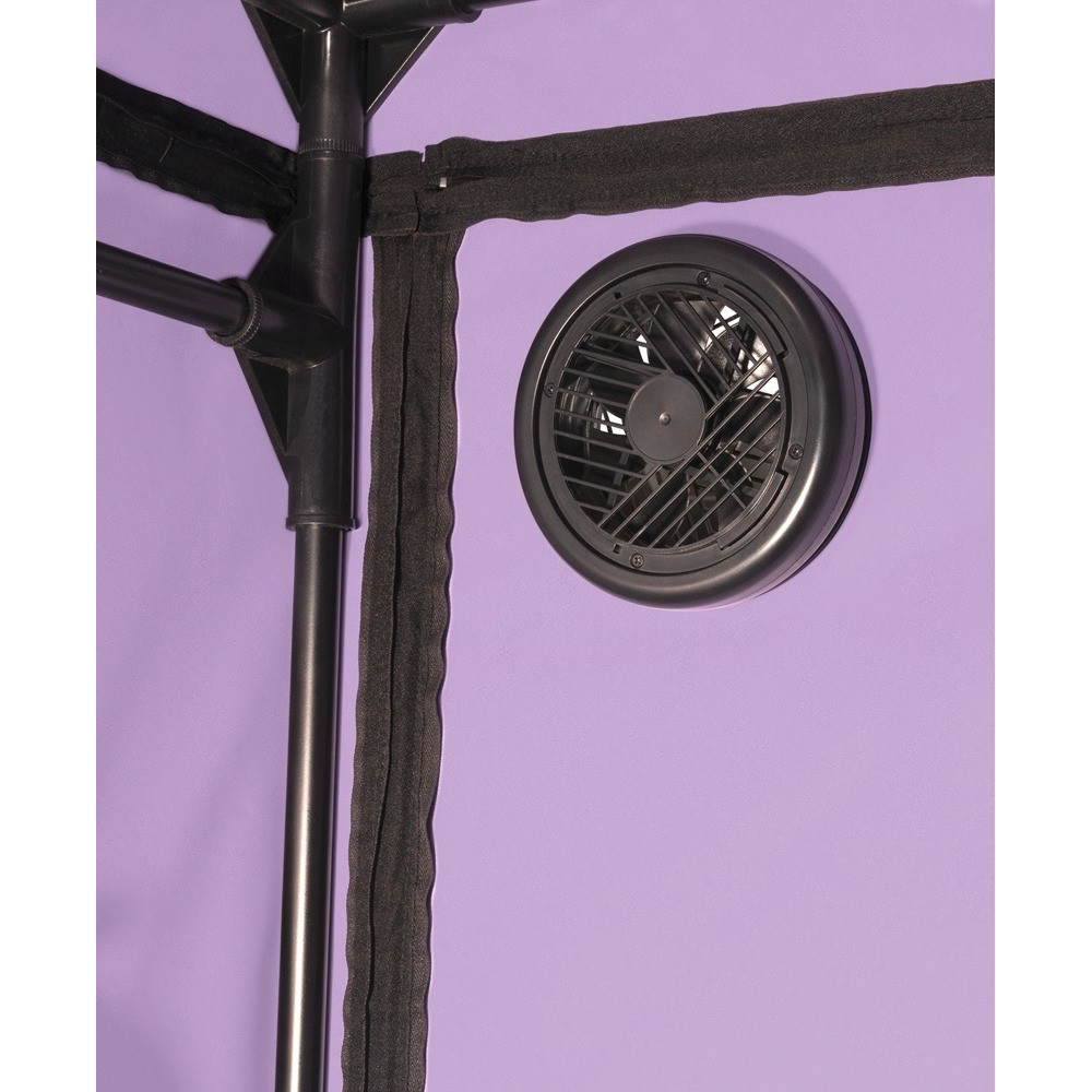 Caja (desmontada), alfombrilla para el suelo, 1 par de esposas, 1 par de esposas para tobillos, 2 ventiladores, 1 luz LED - todo viene en la práctica bolsa de almacenamiento/viaje.
