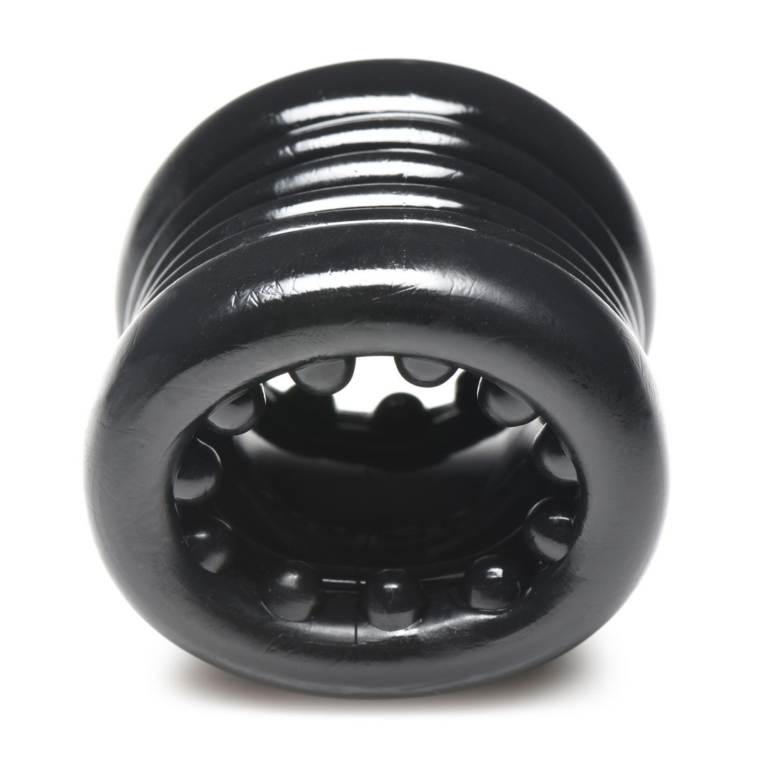 Extensor de testículos en TPE elástico, cómodo y texturizado, para prolongar el placer e intensificar la estimulación.