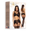Déjate seducir por la sensualidad y la elegancia del conjunto Noir Fantasy, un lujoso conjunto de lencería que cautiva por su artesanía y sus intrincados detalles, acentuando a la perfección las curvas femeninas.