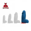 Dildo azul XXL con forma realista, testículos y ventosa extraíble.