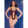 - Elegante body de encaje negro y rojo con estampado floral de rosas