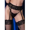 Wonderful black set consisting of halter neck bra with triangular cups, beautiful thong, tempting mask, wonderful garter belt and matching lace stockings. The neck and back adjustable bra straps together with the adjustable garter belt ensure a perfect fit.
