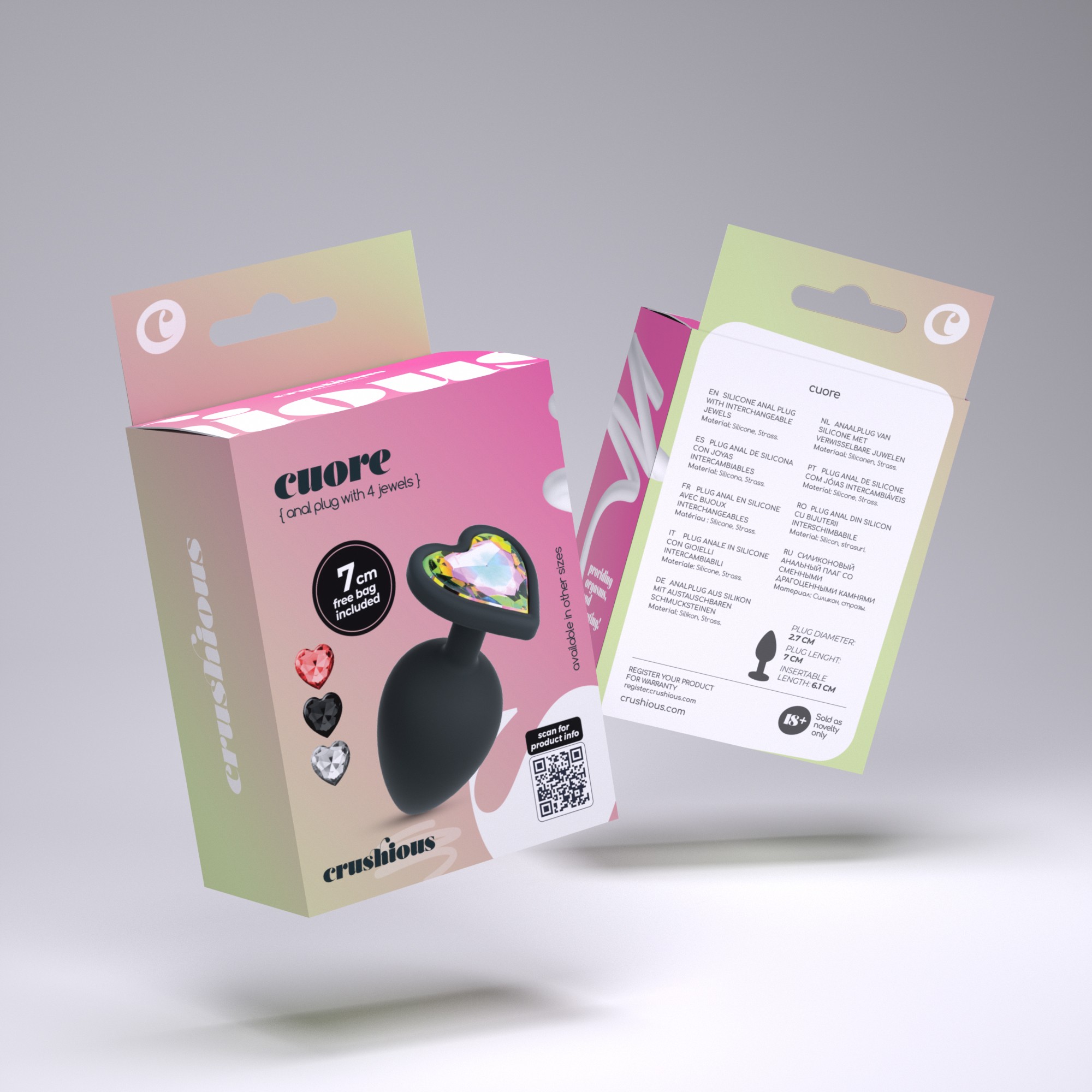 Cuore n'est pas seulement un plug anal en silicone, il est livré avec des strass interchangeables qui s'adaptent à votre humeur.