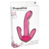 Vibromasseur triple en forme de T, courbé pour stimuler le point G et doté de deux stimulateurs supplémentaires: un pour le clitoris (longueur: 6 cm; Ø 2,2–2,9 cm) et un autre pour l'anus (longueur : 7,4 cm ; Ø 1,2–1,7 cm). Couleur rose. Dispose de 3 intensités de vibration, contrôlables à l'aide d'un seul bouton.