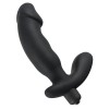 Ce vibromasseur noir à la tige légèrement ondulée et au gland large à l'extrémité possède un petit plus insolent : un stimulateur de périnée supplémentaire.