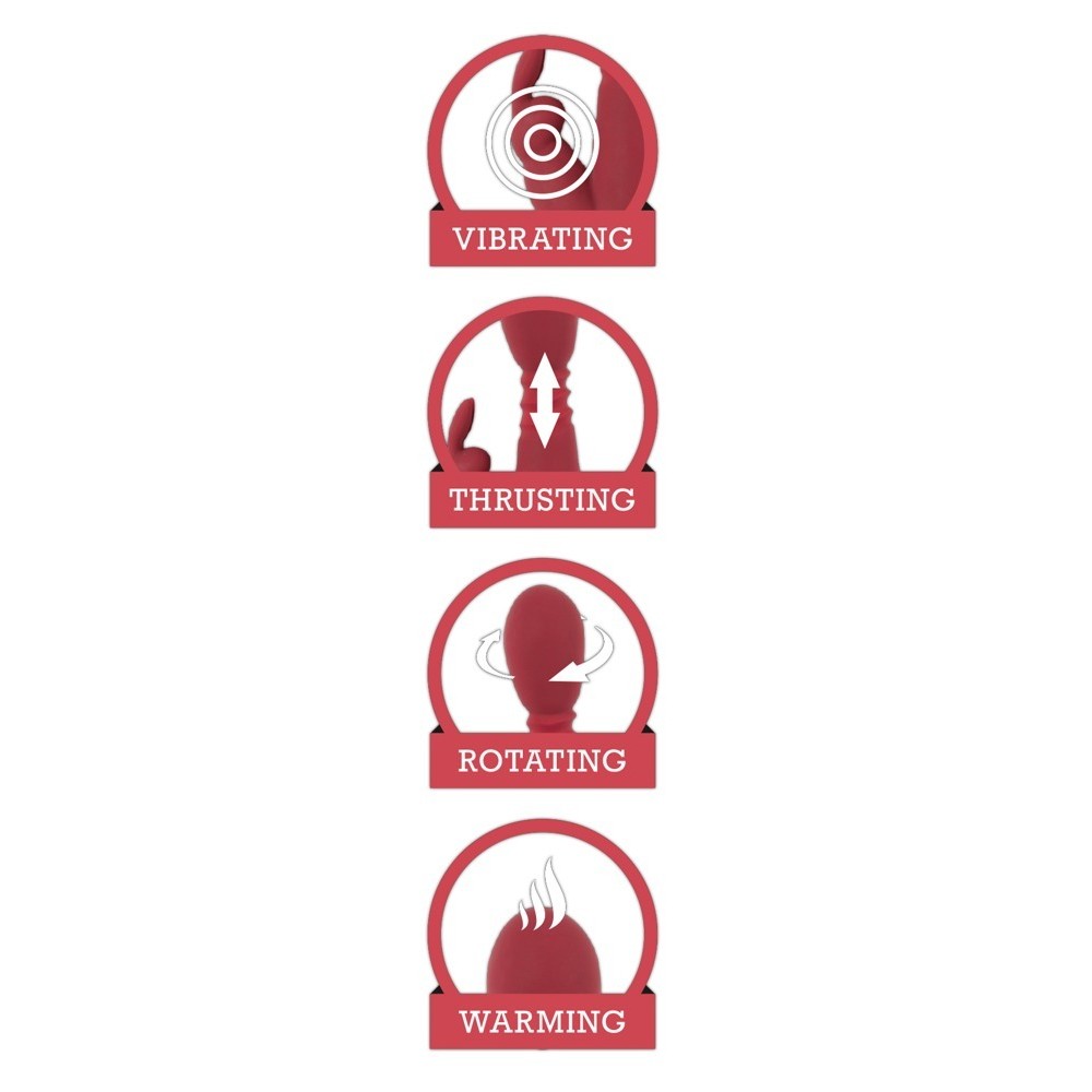 Ce vibrateur rabbit rouge, avec ses élégants détails noirs, promet d'allumer un feu de plaisir. La tige présente des rainures stimulantes en relief pour une stimulation directe du vagin et du point G. Le stimulateur clitoridien en forme de lapin possède des oreilles sensuelles et flexibles, offrant une expérience immersive.