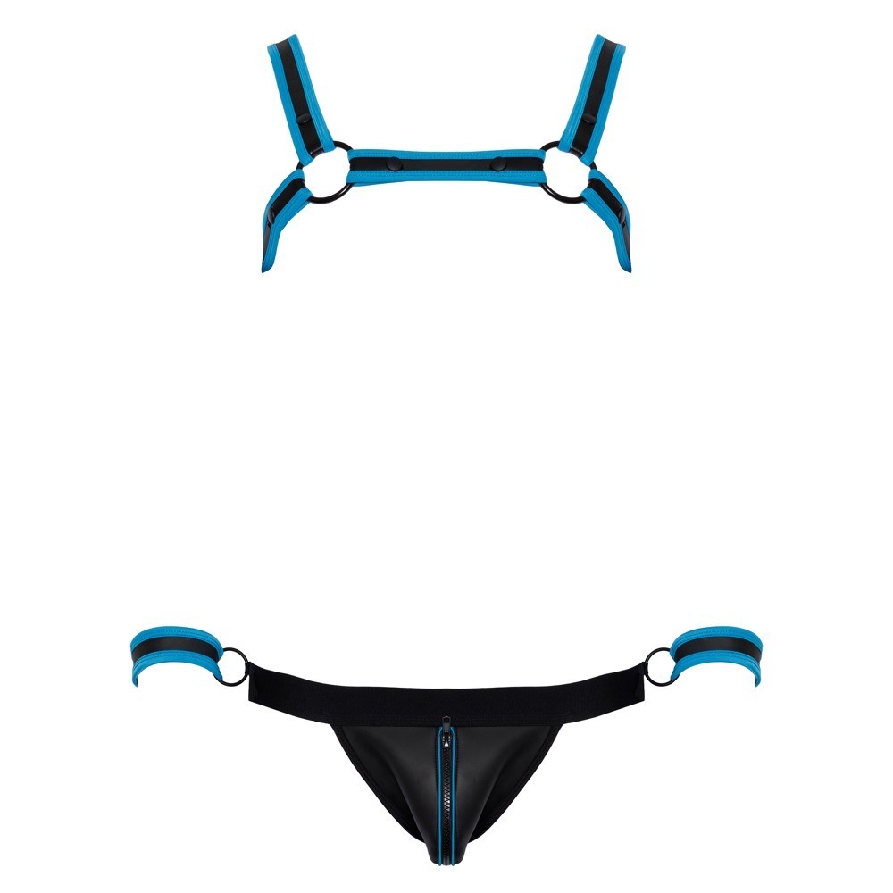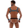 Ensemble Svenjoyment Bondage au look saisissant en néoprène noir rehaussé de détails bleu roi, composé d'un harnais, d'un jock et de 2 menottes. Le harnais s'enfile et s'enlève facilement grâce à ses boutons-pression. Le jock est doté d'une fermeture à glissière sous le sac et d'une conception ouverte dans la partie inférieure, créant un effet provocant. La ceinture est dotée d'anneaux latéraux pour fixer les menottes incluses, qui sont équipées de fermetures à crochets et boucles réglables pour un ajustement confortable et sûr.