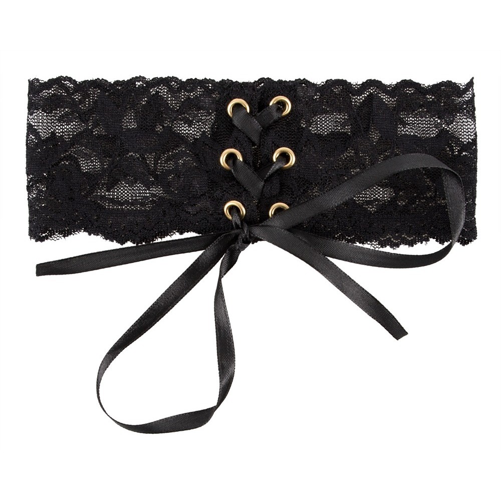 Magnifique choker en dentelle noire avec 6 œillets et un nœud en satin permettant de l'attacher et d'ajuster sa longueur. Le nœud peut être porté à l'avant ou à l'arrière.