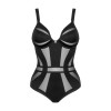 Body noir Chic Amoria d'Obsessive, avec petit détail bijou entre les bonnets à armatures. Style classique qui combine des sections opaques et des transparences subtiles. Doux et élastique sur tout le corps, il offre un confort parfait. Les larges bretelles confortables et l'agrafe dans le dos sont réglables pour un ajustement idéal.