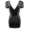 Robe moulante et transparente avec de délicates dentelles sur les côtés, des manches courtes et un décolleté plongeant à l'avant et dans le dos. La fermeture éclair à double sens à l'avant complète ce look sexy et irrésistible.