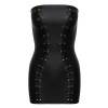 Robe courte sans bretelles en noir mat élégant, avec une coupe ajustée qui met en valeur la silhouette. Des détails d'œillets métalliques rose doré avec des lacets décoratifs à l'avant créent un effet sablier. Tissu doux et très élastique pour un confort maximal.