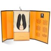 Les deux moteurs puissants mais silencieux (40 dB) offrent une expérience variée et discrète, avec 10 modes de vibration et 5 vitesses réglables. Les modes peuvent être contrôlés séparément directement sur le vibromasseur, à l'aide d'un bouton tactile. Chaque mode est accompagné d'un éclairage LED coloré dans l'élégant détail doré central. Grâce à son bouton de verrouillage pratique, Aiko est idéal pour le transport et peut être utilisé dans la baignoire ou sous la douche, car il est entièrement étanche.