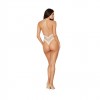 Body dos nu en résille avec bordures en dentelle extensibleDossier bas avec ouverture par fermoir à anneau doré et garniture de perles drapéesDécolleté plongeant et string au dos/