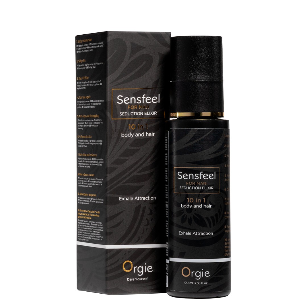 Lotion pour le corps et les cheveux à base de phéromones, formulée à partir de l'ingrédient naturel Sensfeel For Him™ et d'un parfum masculin séduisant. Un produit efficace dans ses 10 fonctions pour le corps et les cheveux.