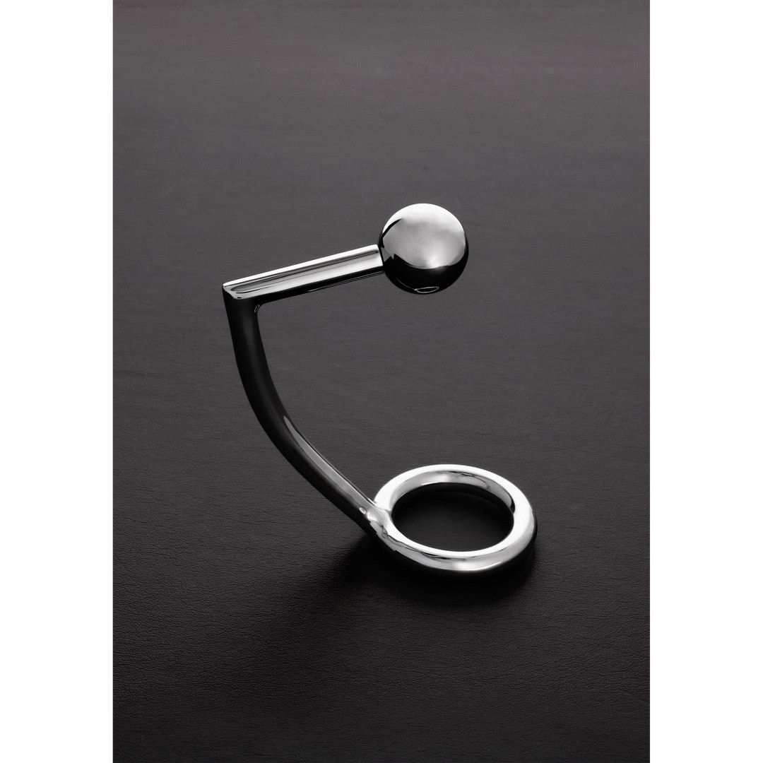 Anneau pour pénis en acier inoxydable avec boule anale amovible pour plus de confort et de plaisir.