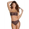 Ensemble soutien-gorge et string avec broderie de style vénitien. Le soutien-gorge a un décolleté bandeau avec des bretelles réglables et un soutien intérieur avec un bord discrètement incrusté dans le bonnet. Le dos est doté de bretelles élastiques et d'un fermoir réglable. Le string taille haute assorti est brodé en dentelle de Venise. L'ensemble est complété par des détails élastiques avec des bretelles et des anneaux dorés.
