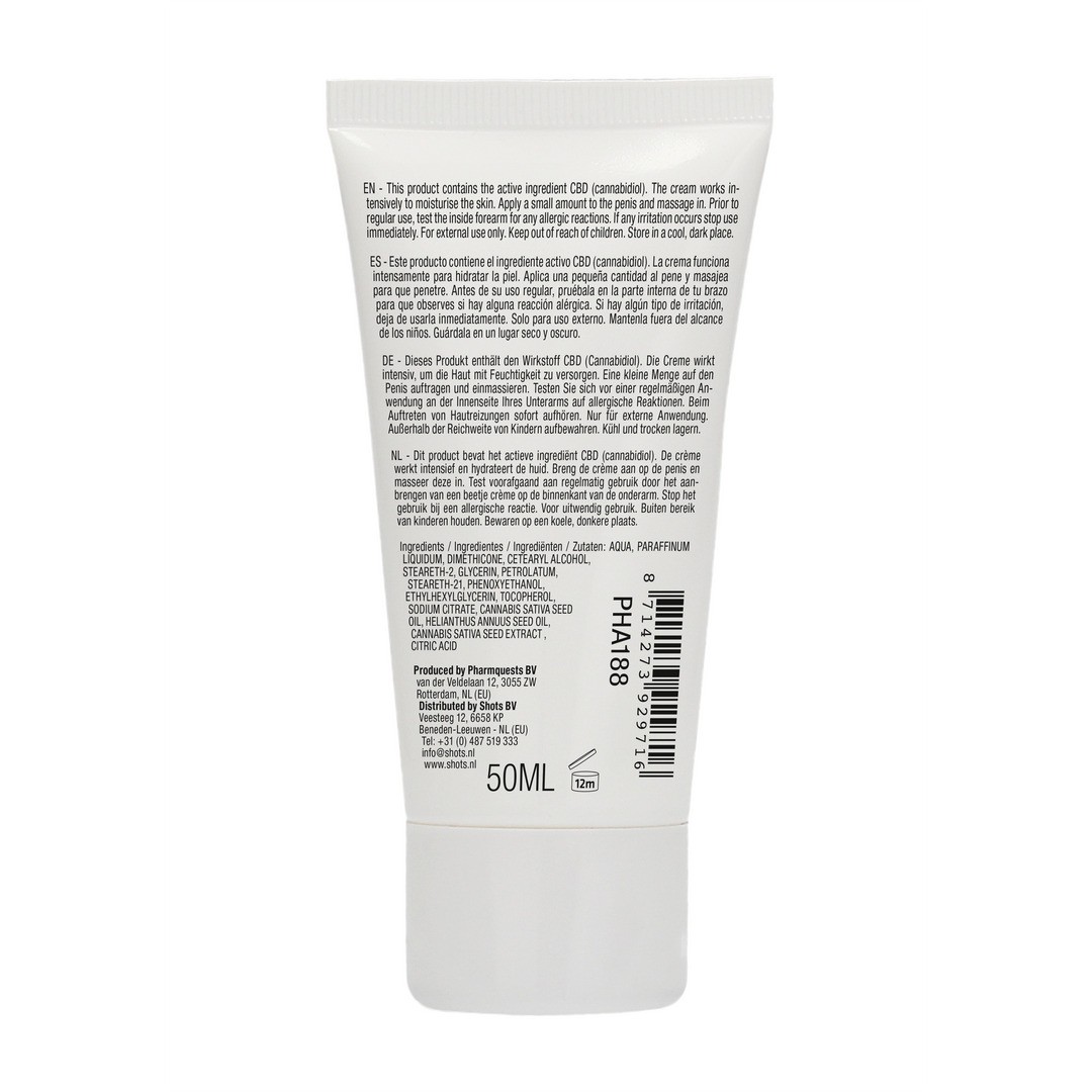 Ce produit contient l'ingrédient actif CBD (cannabidiol). Lubrifiant au CBD de haute qualité qui intensifie les sensations. Testé dermatologiquement et 100% sûr pour le corps. Cette crème hydrate intensément la peau.