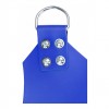 Balançoire rectangulaire en cuir bleu, confortable et résistante, avec 4 points de fixation métalliques.