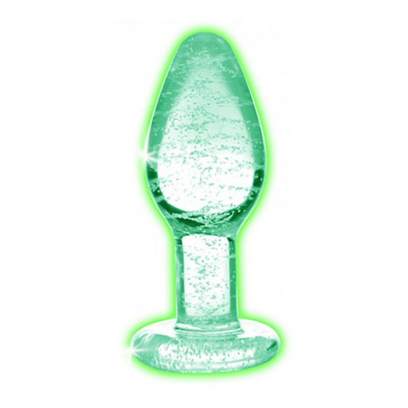 Plug anal en verre qui brille dans le noir, parfait pour des nuits lumineuses et des plaisirs intenses.