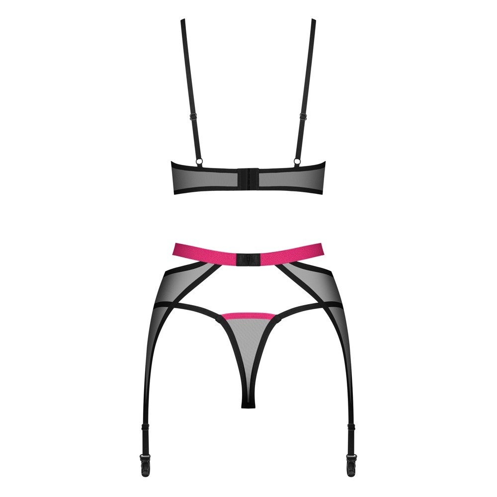 L'ensemble de 3 pièces, Novenes d'Obsessive, comprend un soutien-gorge sans fil, un porte-jarretelles et un string.