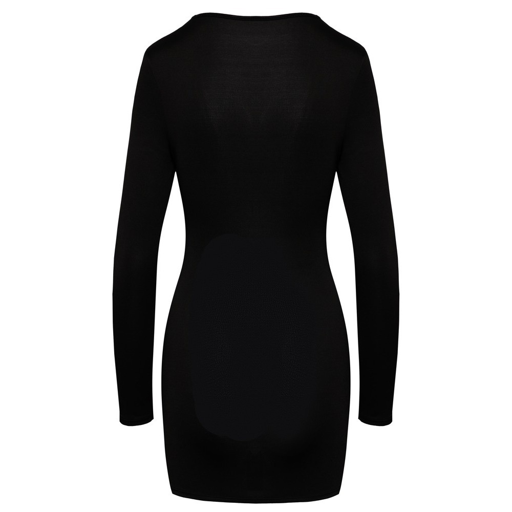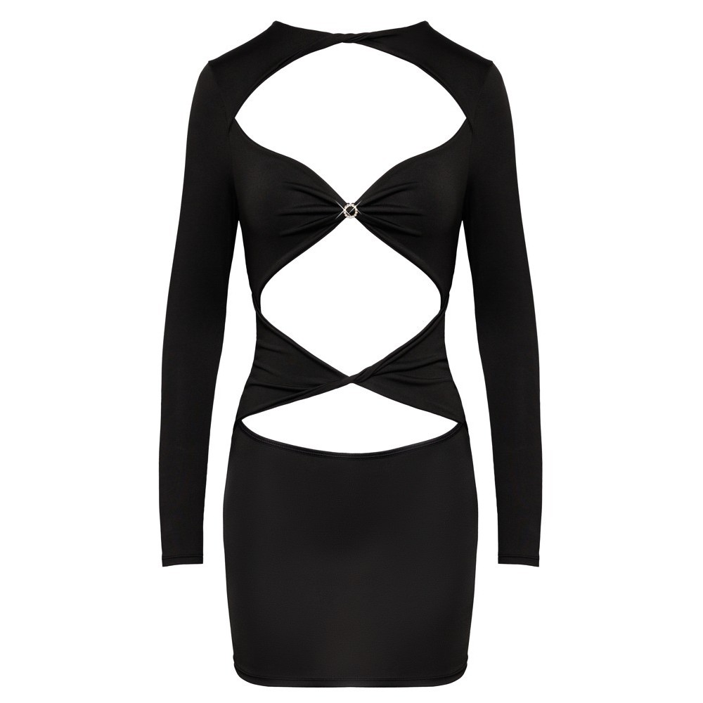 Robe courte, moulante et à manches longues de Cottelli PARTY, confectionnée dans une matière douce et élastique. Elle présente un devant sexy et révélateur avec 3 découpes torsadées et des volants. Un anneau en strass brillant entre les bonnets ajoute une touche supplémentaire.