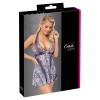 Robe courte légèrement ample de Cottelli LINGERIE au look peau de serpent. Très décolletée. Avec un grand anneau décoratif argenté. Dos nu, se noue dans le cou. Entièrement confectionnée en powernet délicat et transparent avec un motif élaboré.
