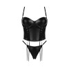 Un ensemble sexy en éco-cuir noir, parfait pour les femmes qui veulent mettre en valeur leur assurance et leur style unique. Le top court - corset avec bonnets à armatures assure un excellent soutien du buste, et le laçage décoratif sur le devant ajoute une touche de fougue à l'ensemble.