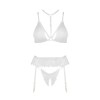 Découvrez l'exceptionnel ensemble de lingerie Noemi set white, composé d'un soutien-gorge, d'un string et d'un porte-jarretelles, qui vous enchantera sans aucun doute, vous et votre partenaire.