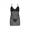 Nuisette en tulle noir avec dentelle délicate, bretelles réglables et string assorti, idéale pour des nuits inoubliables.