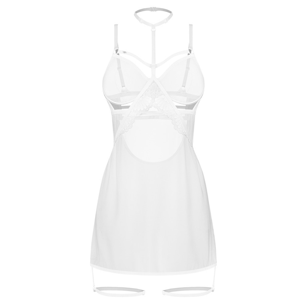 La nuisette moulante Arrowel d'Obsessive est fabriquée en powernet blanc transparent avec une dentelle délicate sur le devant. Elle est douce et extensible. Les bonnets souples à armatures sont dotés de fines bretelles extensibles. Une bretelle réglable mène au tour de cou réglable.
