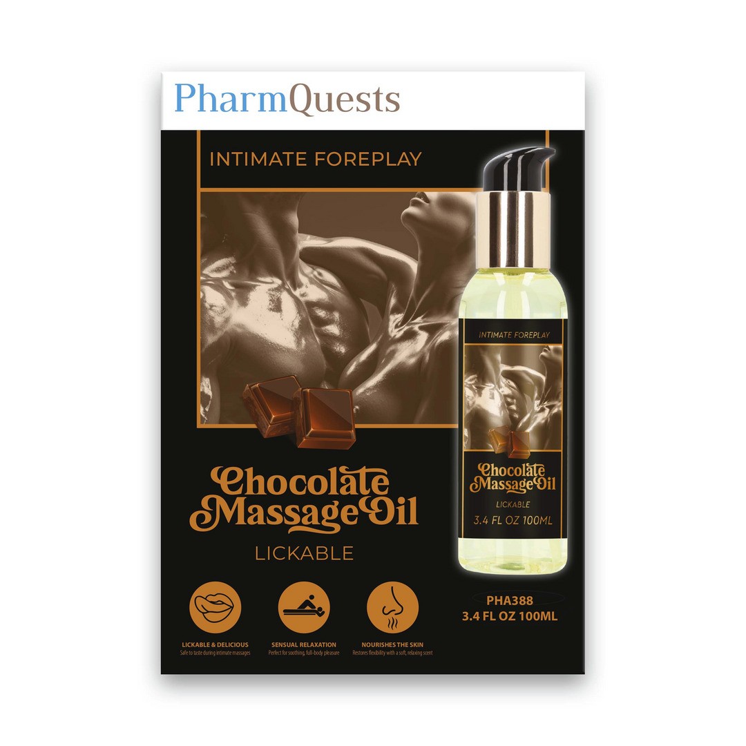 Infographie Huile de massage au chocolat en anglais.