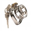 Cage de chasteté métallique de 4,3 cm avec couvercle en silicone rose, deux clés et anneaux ajustables pour un contrôle et un plaisir prolongé.