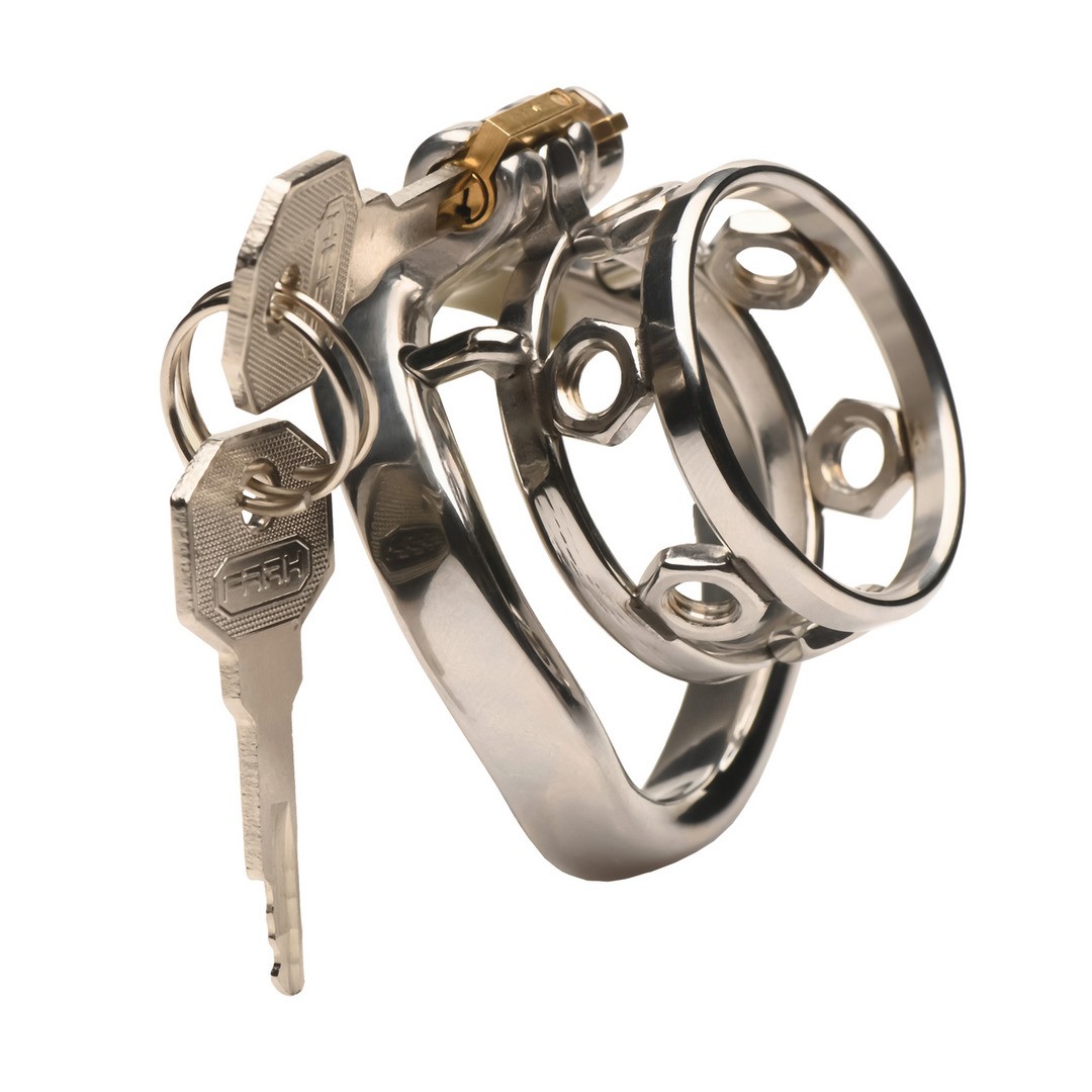 Le mécanisme de verrouillage sécurisé comprend deux clés, vous offrant une tranquillité d'esprit même lorsque vous confiez le contrôle à votre Keyholder. Pour plus de polyvalence, le couvercle amovible transforme le dispositif en anneau pour le pénis et les testicules en érection, vous aidant à prolonger l'expérience avant la libération.