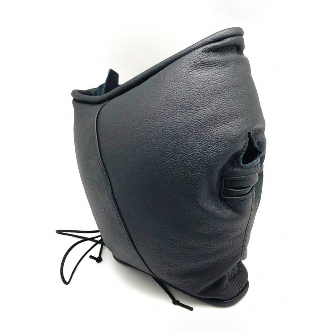 Cagoule en cuir pour la privation sensorielle, conçue pour intensifier la privation sensorielle et approfondir l'expérience.