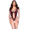 - Élégant body en dentelle noire et rouge avec motif floral à roses