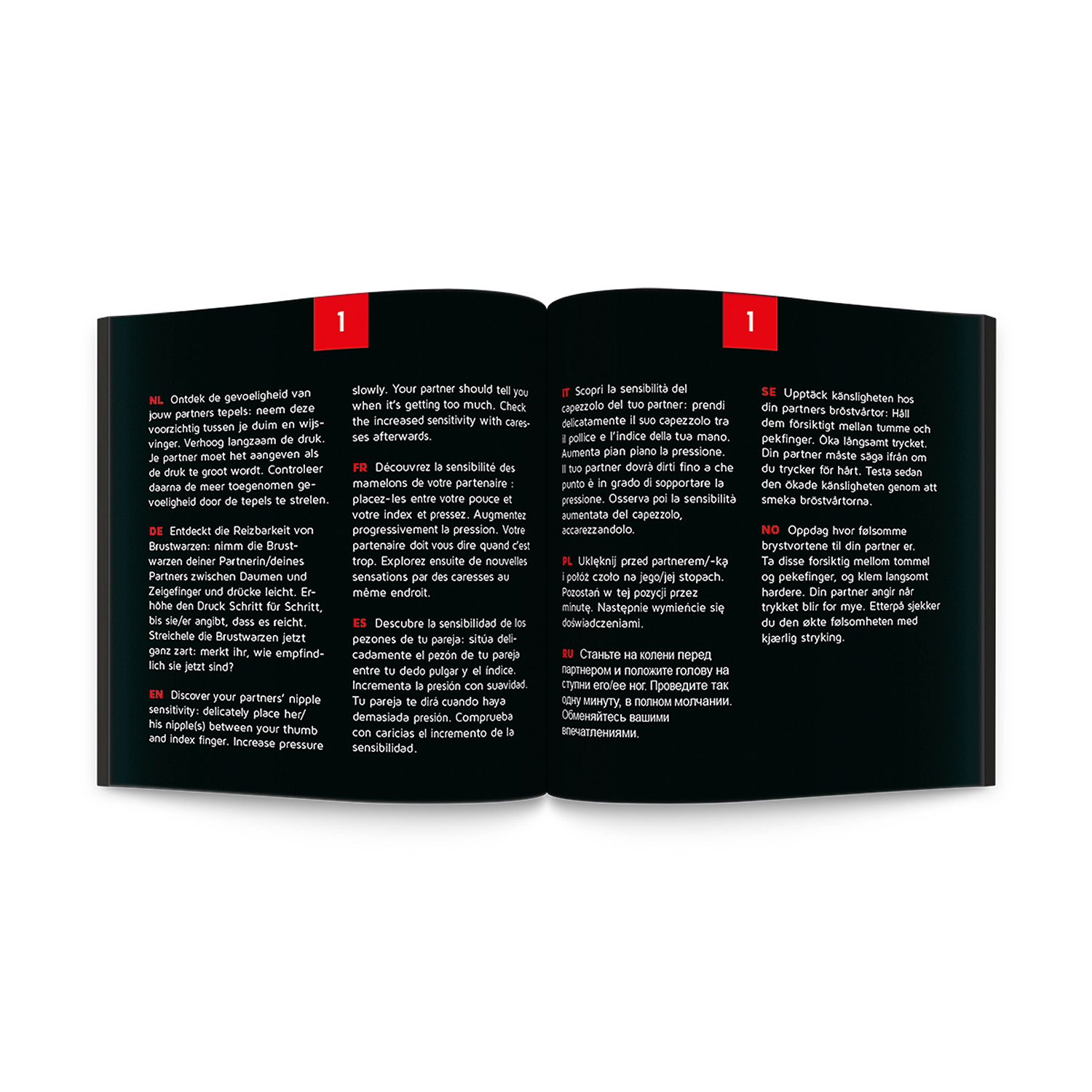 Le 24 sfide della Kinky edition sono disponibili in 10 lingue: inglese, spagnolo, francese, tedesco, olandese, polacco, russo, italiano, svedese e norvegese e daranno un tocco emozionante alla tua vita. Una fantasia segreta realizzata o nuove sensazioni esplorate? Scopri i tuoi limiti, allarga i tuoi orizzonti e goditi la tua intimità. È abbastanza cattiva da rischiare?