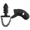 La gabbia per pene con plug anale di Black Velvets combina una gabbia con un anello per testicoli, collegati da una robusta catena a un plug anale scanalato. Oltre alla sensazione eccitante, la gabbia offre un look eccitante ed è un accessorio perfetto per i giochi di controllo e castità.
