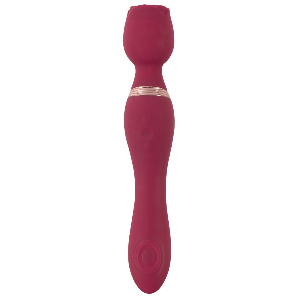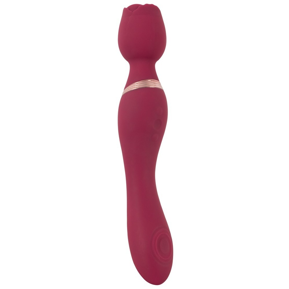 Il massaggiatore Thumping Wand Vibrator di Rosenrot, dal design elegante, presenta una rosa chiusa come testina massaggiante. Entrambe le estremità possono essere utilizzate, poiché ciascuna è dotata di un potente motore: la testina a forma di rosa come massaggiatore e l'asta come vibratore.