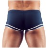Pantaloncini in morbida microfibra dal look marinaro moderno. Presentano una cerniera extra larga sul davanti e strisce decorative lungo le gambe, unendo comfort e stile audace.