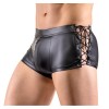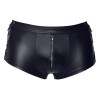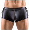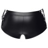 Shorts aderenti di Svenjoyment, realizzati in tessuto leggermente elasticizzato con una moderna finitura opaca. Presentano lacci laterali per regolare la vestibilità e una chiusura a cerniera imbottita sul davanti, che conferisce un tocco sensuale e funzionale.