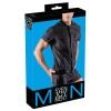 Camicia nera Svenjoyment dal taglio ampio, in stile giacca, realizzata in tessuto leggermente elasticizzato con una moderna finitura opaca. Presenta chiusura frontale con bottoni a pressione e inserti elasticizzati sul colletto e in vita per una vestibilità ottimale. Include due tasche sul petto e una tasca su ciascuna manica, tutte con patta e bottone a pressione, che uniscono funzionalità a un look contemporaneo e audace.