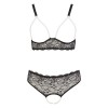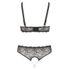 Il reggiseno senza ferretto presenta una chiusura a gancio sul retro, spalline regolabili ed eleganti catene di perle sul seno, che lo rendono unico e affascinante. Il perizoma abbinato ha due catene di perle sulla zona dell'inguine completamente aperta, per un effetto sensuale e sofisticato.