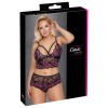 Reggiseno e perizoma senza ferretto, con scollatura profonda, della Cottelli CURVES, realizzati interamente in morbido pizzo floreale elasticizzato, disponibili in due colori diversi. Il pizzo si adatta delicatamente al corpo, lasciando intravedere la pelle in modo seducente. Il reggiseno presenta fasce elastiche nella zona della scollatura che valorizzano le coppe e possono essere regolate per una vestibilità perfetta.