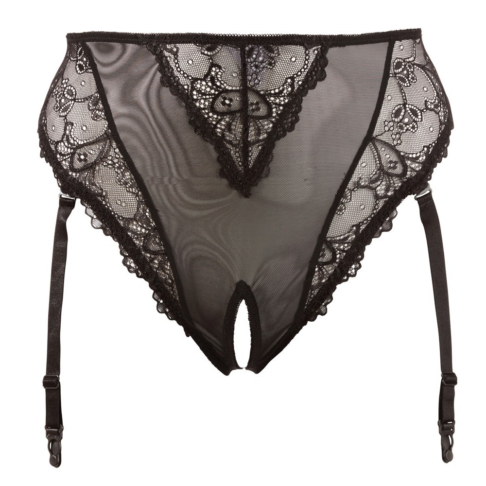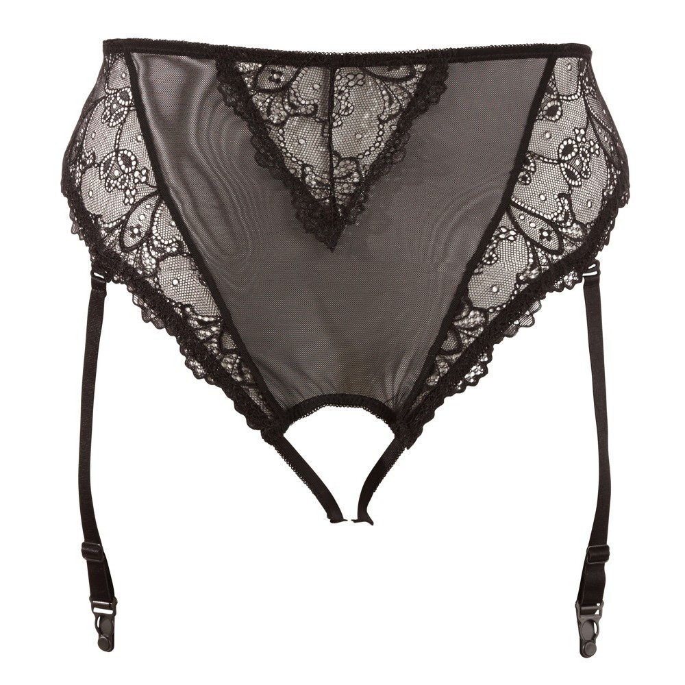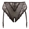 Mutandine con reggicalze e senza cavallo, realizzati in powernet con delicata pizzo floreale. Il taglio a vita alta valorizza il ventre e il punto vita, esaltando le curve. Le cinghie del reggicalze sono regolabili e possono anche essere completamente rimosse.