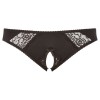 Mutandine aderenti con inserti in pizzo elastico sul davanti. La zona inguinale è provocatoriamente aperta e il design è impreziosito da un audace fiocco decorativo che aggiunge un tocco irresistibile.