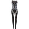 Tuta in tessuto trasparente con effetto bagnato brillante che esalta le curve con audacia. Modello senza maniche, con fiocco sul davanti e cerniera a doppio cursore nella zona dell'inguine. La cerniera lunga e discreta sul retro permette di indossarla e toglierla con facilità.