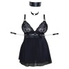 Babydoll, girocollo e bracciali in un set di Cottelli BONDAGE che include anche una lunga sciarpa bondage! Babydoll corto e leggermente svasato in powernet delicato ed elasticizzato con parte della gonna a due strati e coppe in pizzo. Le coppe possono essere aperte rapidamente grazie ai bottoni a pressione. Il girocollo regolabile, le spalline regolabili e la fascia sotto il seno sono realizzati in materiale opaco e sono dotati di borchie e anelli argentati. I passanti per le braccia possono essere attaccati all'anello su entrambi i lati del cinturino opaco grazie ai moschettoni. I passanti per le braccia sono dotati di chiusura a gancio e ad anello. Include una sciarpa bondage lunga 1,20 m che può essere utilizzata come costrizione a caldo o come benda.