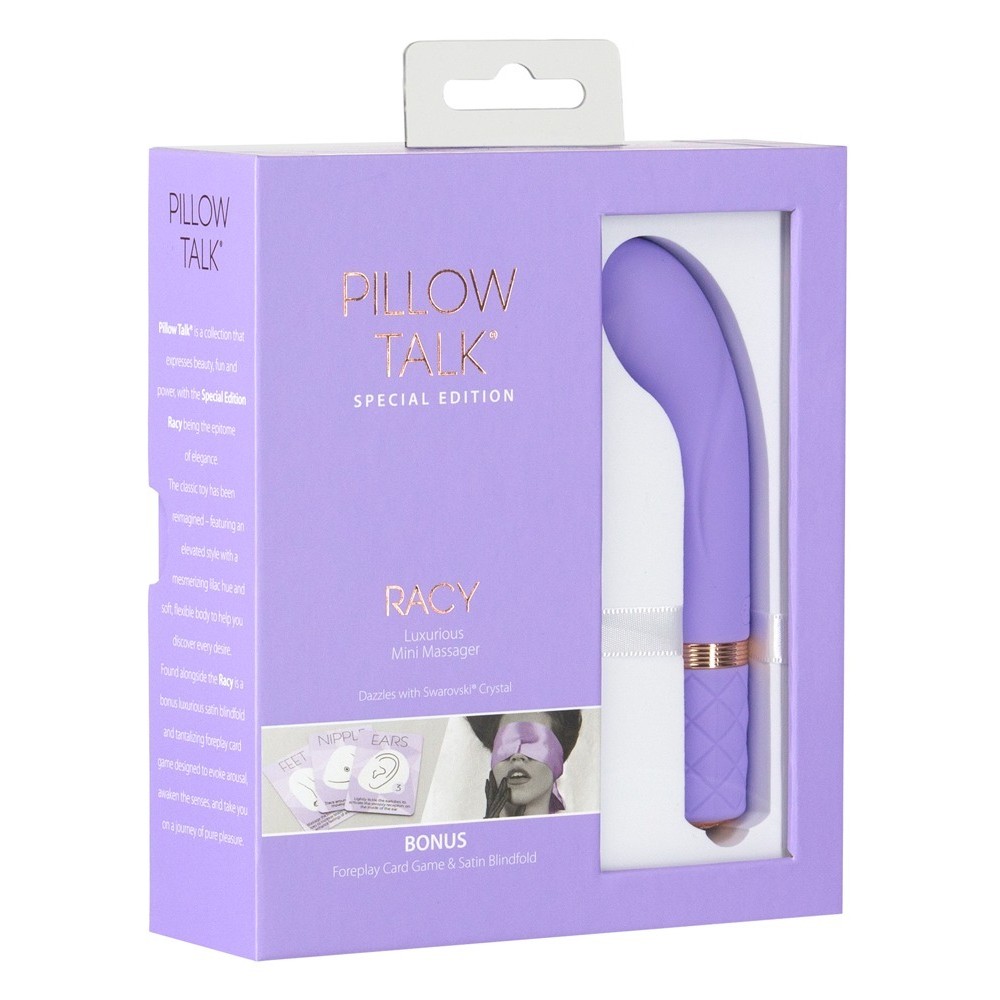 L'edizione speciale Racy di Pillow Talk è pura seduzione. Include un eccitante mazzo di carte per coppie, ricco di ispirazioni per i preliminari, e un fazzoletto di raso di alta qualità che può essere utilizzato come benda o come accessorio di restrizione per momenti di piacere e mistero.